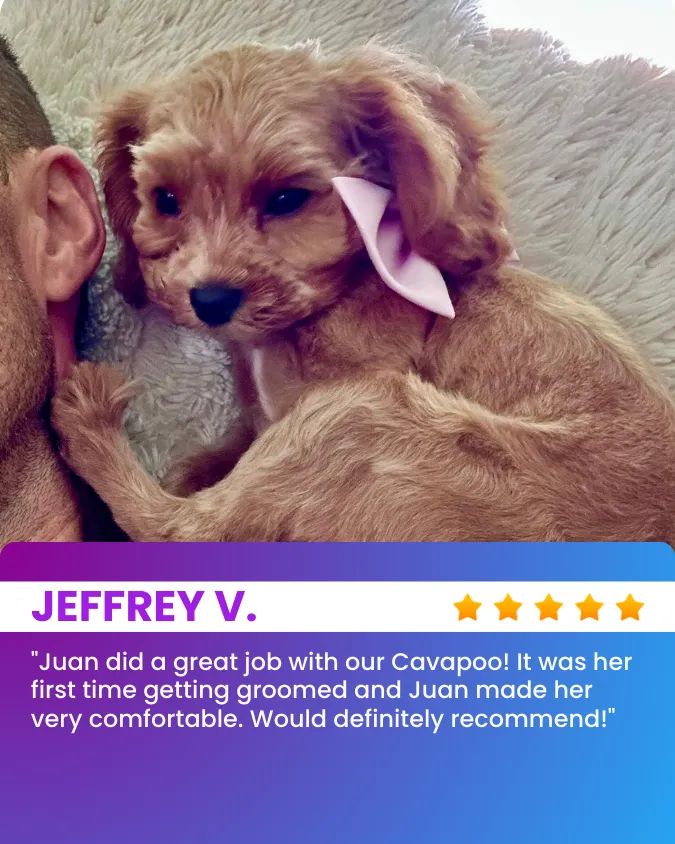 "Juan did a great job with our Cavapoo! It was her first time getting groomed and Juan made her very comfortable. Would definitely recommend!"